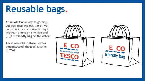 Therefore, I decided that a dramatic approach was needed to really catch customers’ attention, but also to make clear that Tesco has been leading the way in sustainability for many years and weren’t simply jumping on a bandwagon.